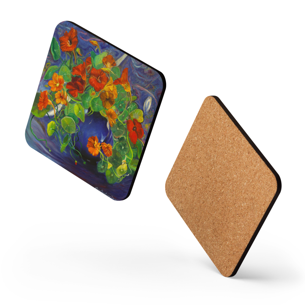 Nasturtiums in a Blue Vase - Cork-back coaster